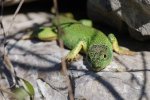 In early spring adult Balkan green lizard / Riesensmaragdeidechse / Lacerta trilineata are easier to photography, because they don't act that shy and bask quite exposed.
